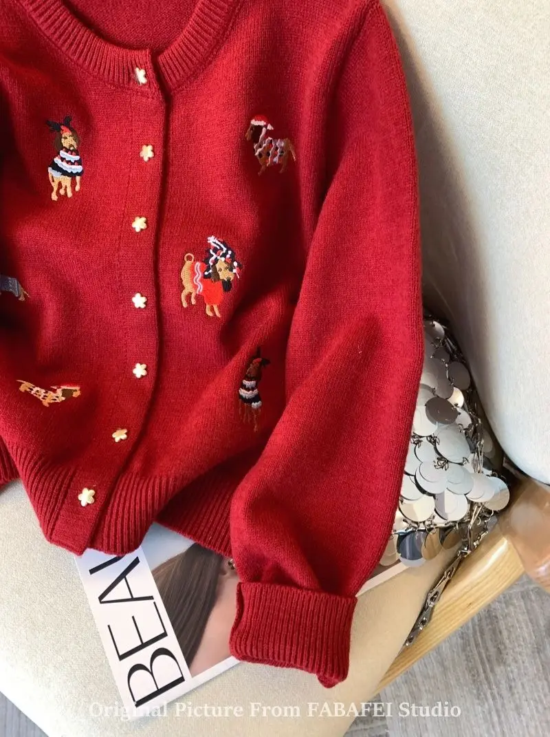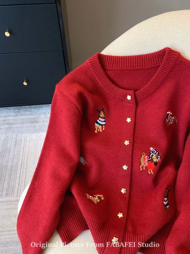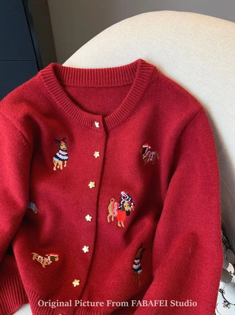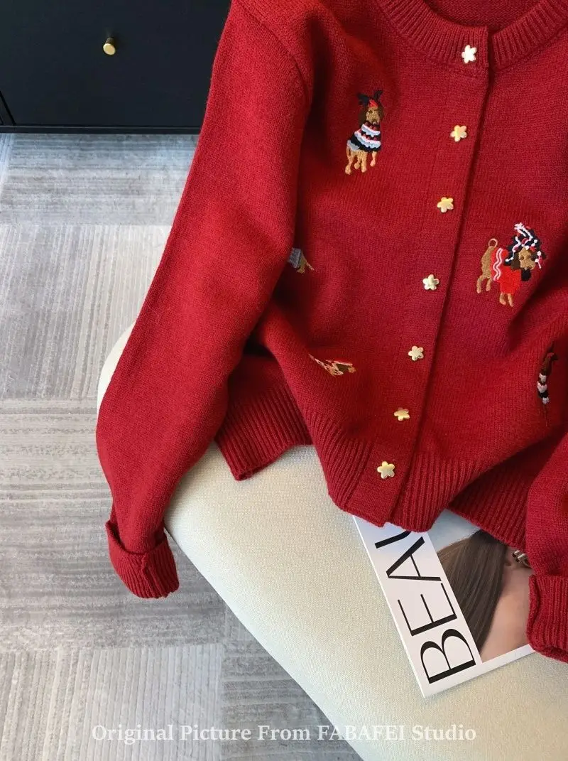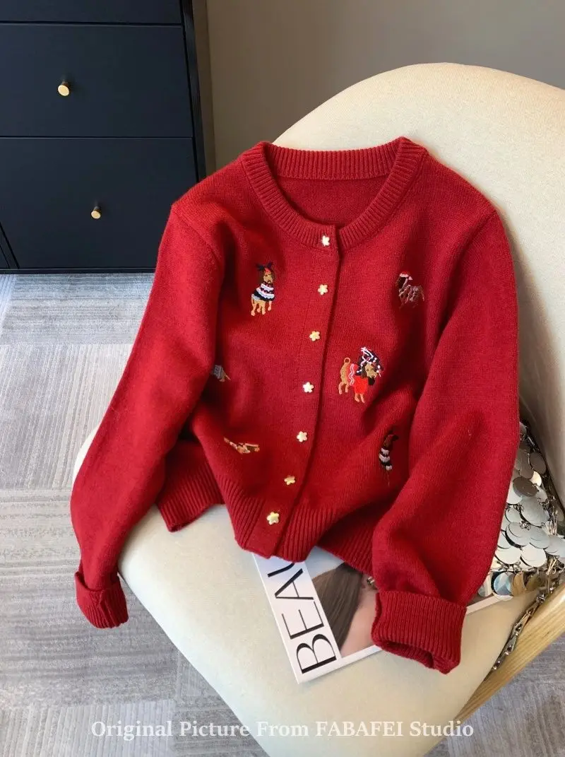 Stay cozy and stylish with this thick, extra-heavyweight knit cardigan, designed with playful cartoon embroidery for a fun twist on classic comfort. Made from high-stretch polyester, it features a loose fit, full-length sleeves, and a single-breasted front for easy layering. The soft knitted texture, O-neck collar, and bold seasonal design make it a perfect choice for autumn and winter wear. Effortlessly blending warmth with personality, this piece adds charm to any casual outfit.