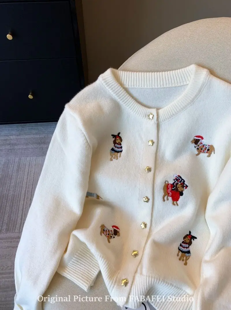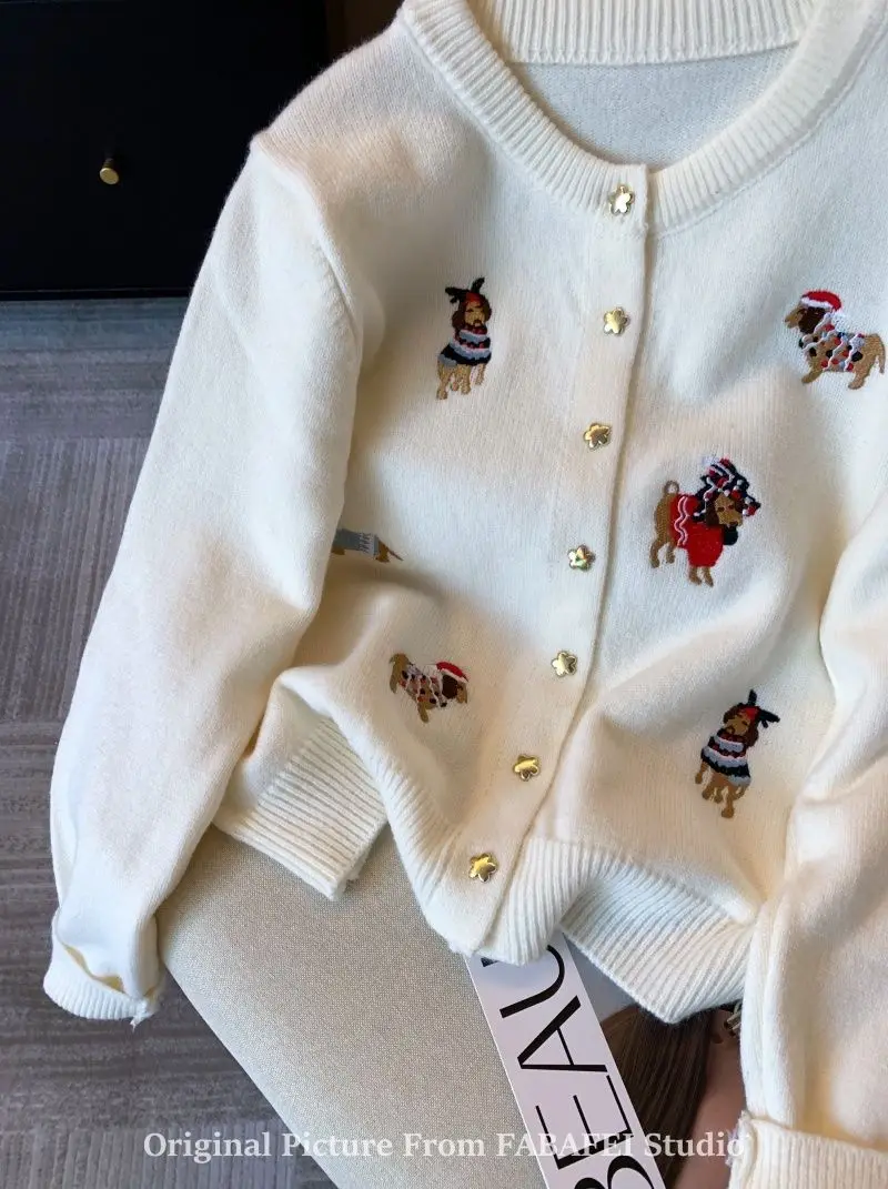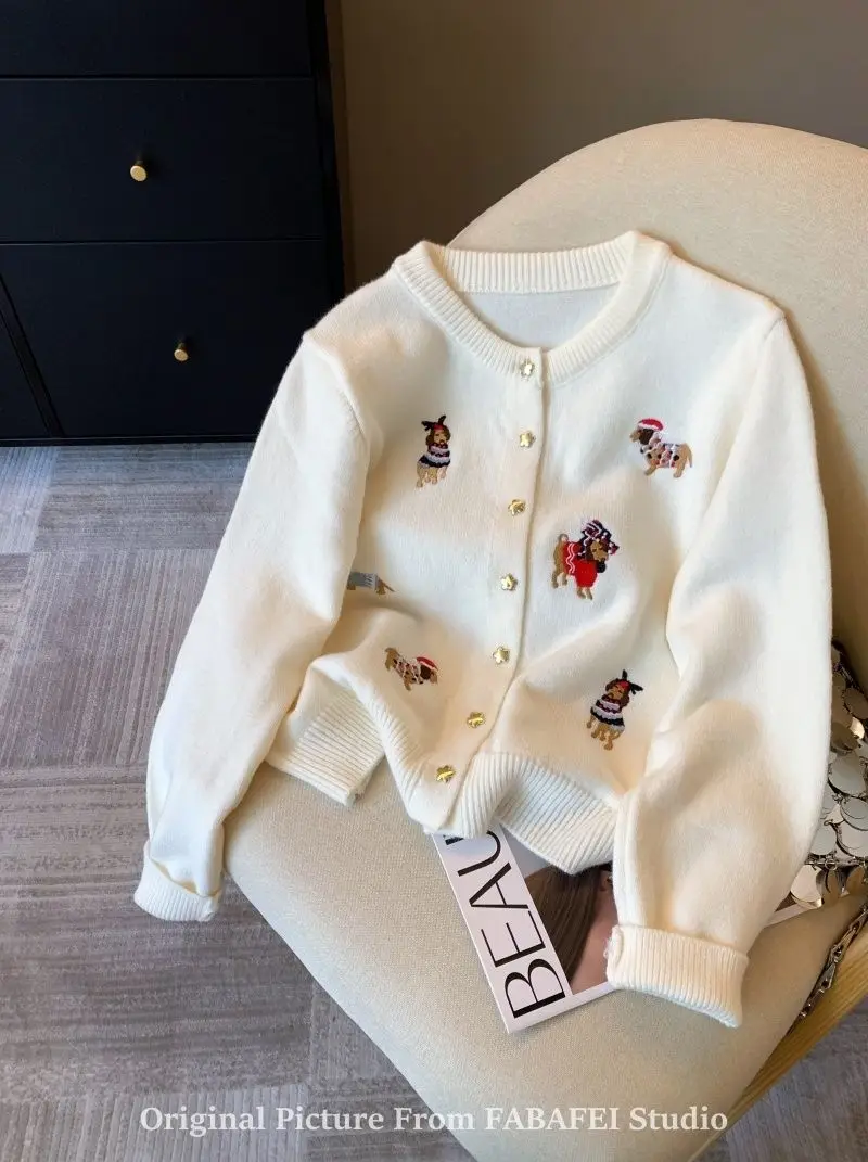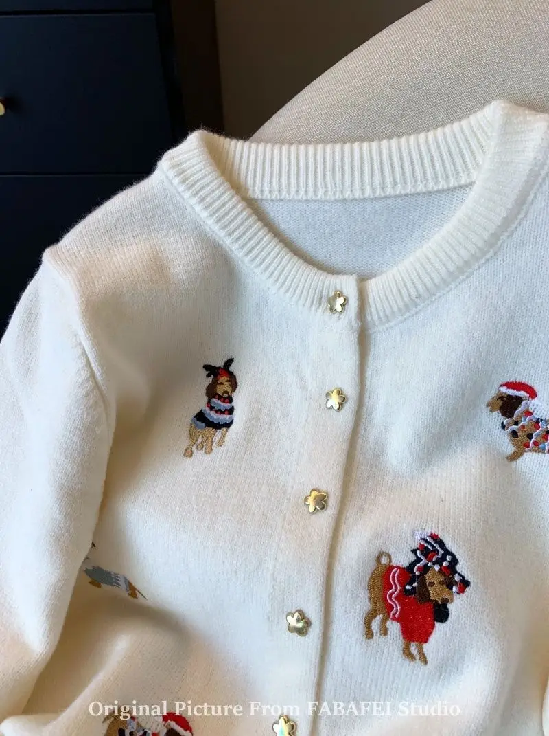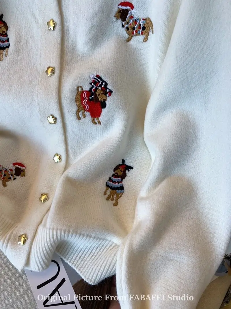 Stay cozy and stylish with this thick, extra-heavyweight knit cardigan, designed with playful cartoon embroidery for a fun twist on classic comfort. Made from high-stretch polyester, it features a loose fit, full-length sleeves, and a single-breasted front for easy layering. The soft knitted texture, O-neck collar, and bold seasonal design make it a perfect choice for autumn and winter wear. Effortlessly blending warmth with personality, this piece adds charm to any casual outfit.